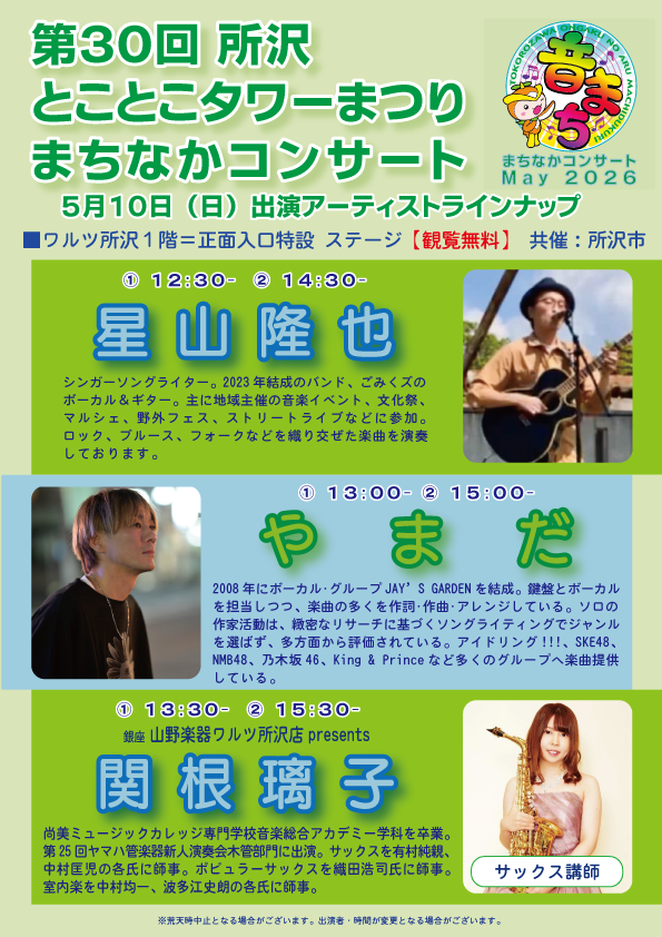 【予告:5月10日】とことこタワーまつりまちなかコンサートMay2026