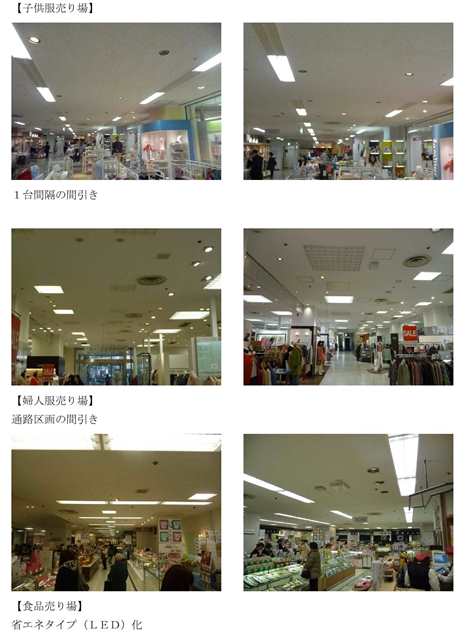 今後も電気・ガスエネルギーの削減を図り前年度比年間1%以上削減を目標に店内空調温度のコントロールや不要な照明の消灯を行うなどの環境配慮活動に積極的に取り組んで参ります。一部店内通路の間引き消灯によりご迷惑をお掛けしております。今後とも「省エネルギーオペレーション」に取り組んで参りますのでご支援の程よろしくお願いいたします。